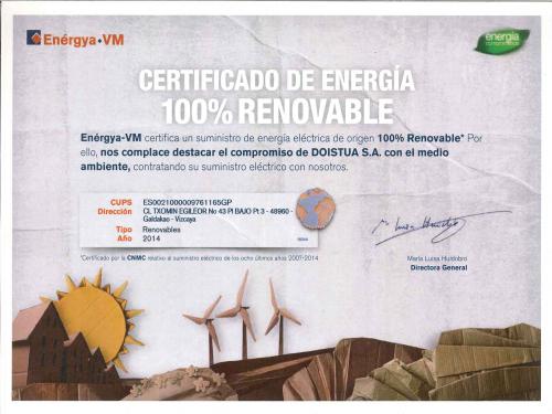 Doistua obtiene el Certificado de energía verde. Reforzamos nuestro compromiso con el medio ambiente.